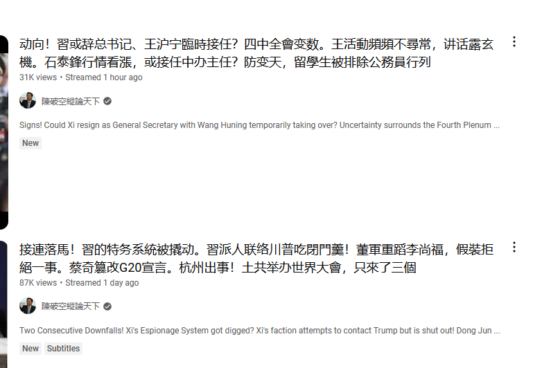 习近平已经被逼退居二线;王沪宁任代理总书记 娇雯 22 11 月, 2024 共党内斗 习近平大傻逼外出就撒币, 已经被逼退居二线;王沪宁任代理总书记 习近平大傻逼外出就撒币, 已经被逼退居二线;王沪宁任代理总书记 习近平大傻逼外出就撒币, 已经被逼退居二线;王沪宁任代理总书记 本文内容除特别注明外均取自各新闻媒体(本站底部列表)和youtuber twitter(x),chatgpt, gemini, 并不代表本站立场! 评论不允许人身攻击。 Posted in 共党内斗Tagged 习近平, 王沪宁Related Posts 胡春华与“习近平集团清算组”之谜 网络疯传李桥铭抓捕了习近平,准备公开习近平杀死李克强罪状 习家王朝,还是内战?二月底将见分晓 习近平兵败如山倒,全军拥立胡锦涛复出; 军队和南方纪委同志软禁齐桥桥和家人 实锤 军队真和习近平干起来了 解放军南部战区告全国人民书 张带弓被杀在赤马红羊劫之年,白头翁习近平混不吝,中国将进入乱世! 习近平抓张又侠破釜沉舟,大不了一死! 张又侠被抓 一张合照惊悚至极;中国军队已经一盘散沙,南部战区呼吁起义! 胡锦涛明天官宣死亡,习近平不怕打内战! 全军一级战备, 各战区向北京派兵; 局势随时突变 “中纪委”张又侠落马通报被秒删;京城爆发武装对峙, 习近平被红二代除名!