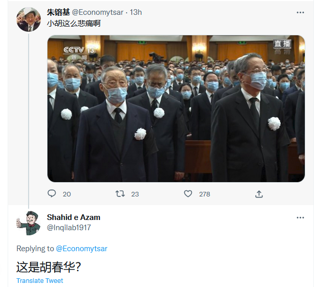 当时有评论说,习壮大到不可一世的地步,壮大到二十大闭幕出现了让世人惊骇的一幕,壮大到前任胡锦涛被赶走,被羞辱时,所有被他提拔的官员,几乎是在场的相当一部分官员,一个个都像僵尸,呆坐著,不敢丝毫有所同情。华尔街日报经过对胡锦涛离场画面逐一分析,得出发生这一幕是习近平授意的结果。