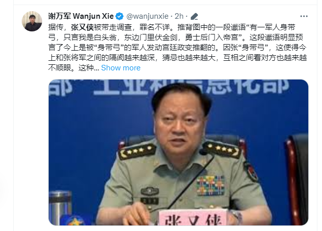 军权作为中共政权的硬指标,是衡量习近平是否真正失权的关键。老灯与吴建民均指出,军委副主席张又侠已成为军权的实际掌控者。张又侠在2025年6月初的中央军委扩大会议上发表强硬讲话,宣布自己代理军委主席职务,批评习近平的军改为“百害而无一利”。他提出恢复七大军区与四总部制度、严禁个人治军及夫人政治,直接否定习近平的军事改革,显示军方高层对其个人集权模式已忍无可忍。