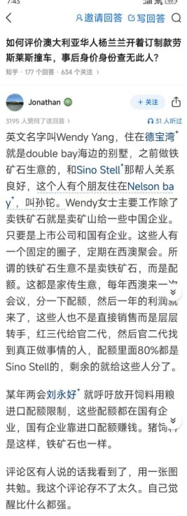 相关:  澳洲杨兰兰拥有铁矿进口配额,存款万亿属红色家族;目测是陈云后代!陈云曾领导冶金部(中钢集团)
