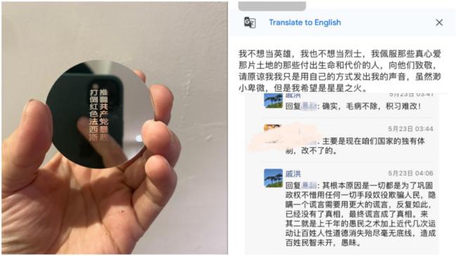 戚洪的行动鼓舞了成千上万的反共义士,全网支持他,声援他,为他和他的家人朋友发声呐喊。