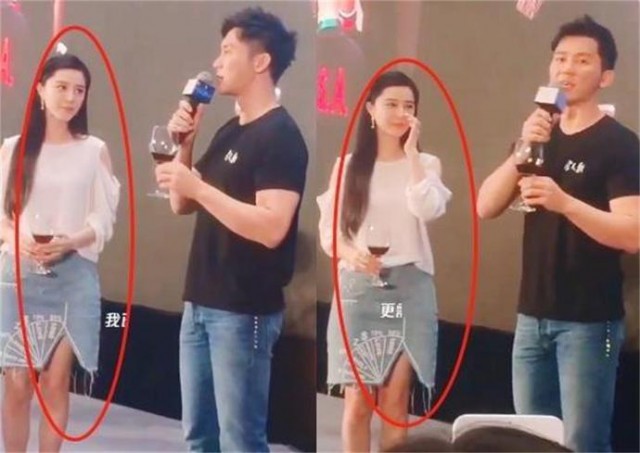 李晨一手拿着酒杯,一手拿着话筒在发言。站在李晨的范冰冰听得很认真,甚至感动落泪,不断地抹眼泪。