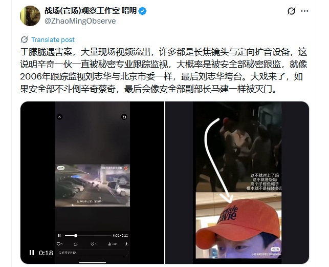 • 于朦胧被杀案被中央另一派完整记录下来;中南海正在经历生死搏斗