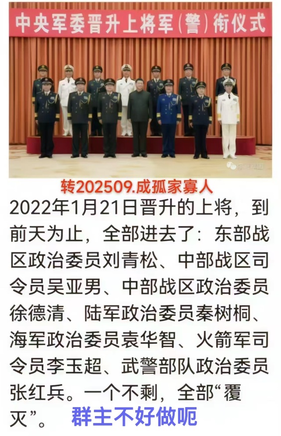 “墙内普通人”表示,习近平的马仔何卫东失踪了半年多,中共官方也没给个说法。假如何卫东已经去世,习近平应该提拔另外一位军委副主席,或数位将军,从而可以对抗张又侠的清洗。他说,“习近平如今的状态很像华国锋,只剩下蔡奇、何立峰、王小洪这几个铁杆了,甚至李强和王沪宁都是有多远躲多远,深怕被连累。”