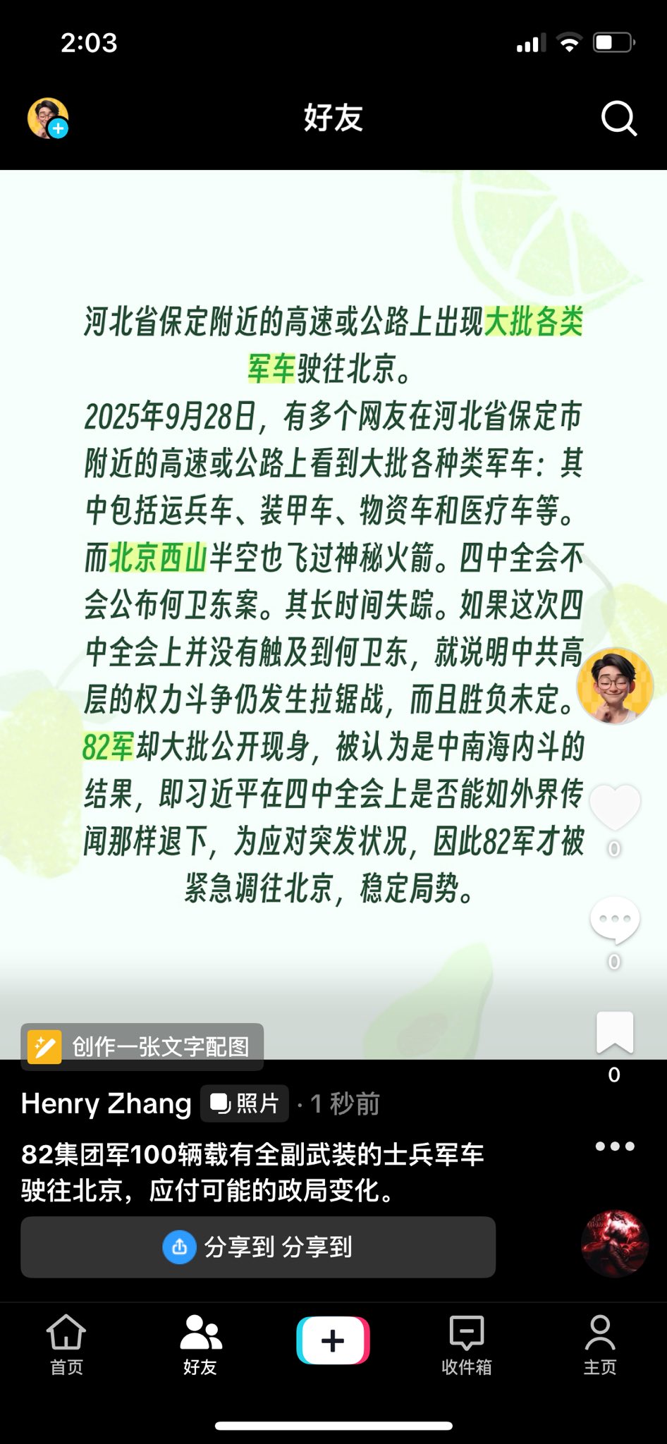 更耐人寻味的是,仅仅一天之后——9月29号,中共中央政治局召开会议,宣布二十届四中全会将于10月20号至23号在北京举行。前一日82军的大规模进京异动,是否与高层即将做出的重大人事与战略部署存在呼应?