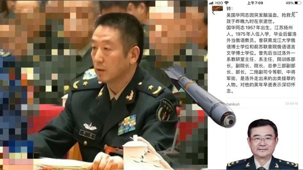 火箭军原副司令员吴国华,在家中三楼厕所上吊自杀。