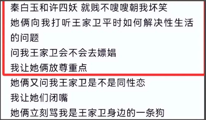 在古二曝光的录音中,秦雯向他打听王家卫如何解决生理需求,甚至询问王家卫会不会嫖娼等等,当时大批吃瓜群众如古二一样觉得是冒犯,而今结合《东邪西毒》剧组嫖娼新闻,秦雯可能也是有感而发。