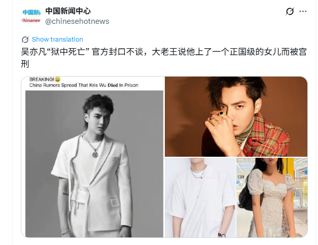 • 吴亦凡因为被一个正国级大佬女儿追求不从而以莫须有的罪名被杀死狱中