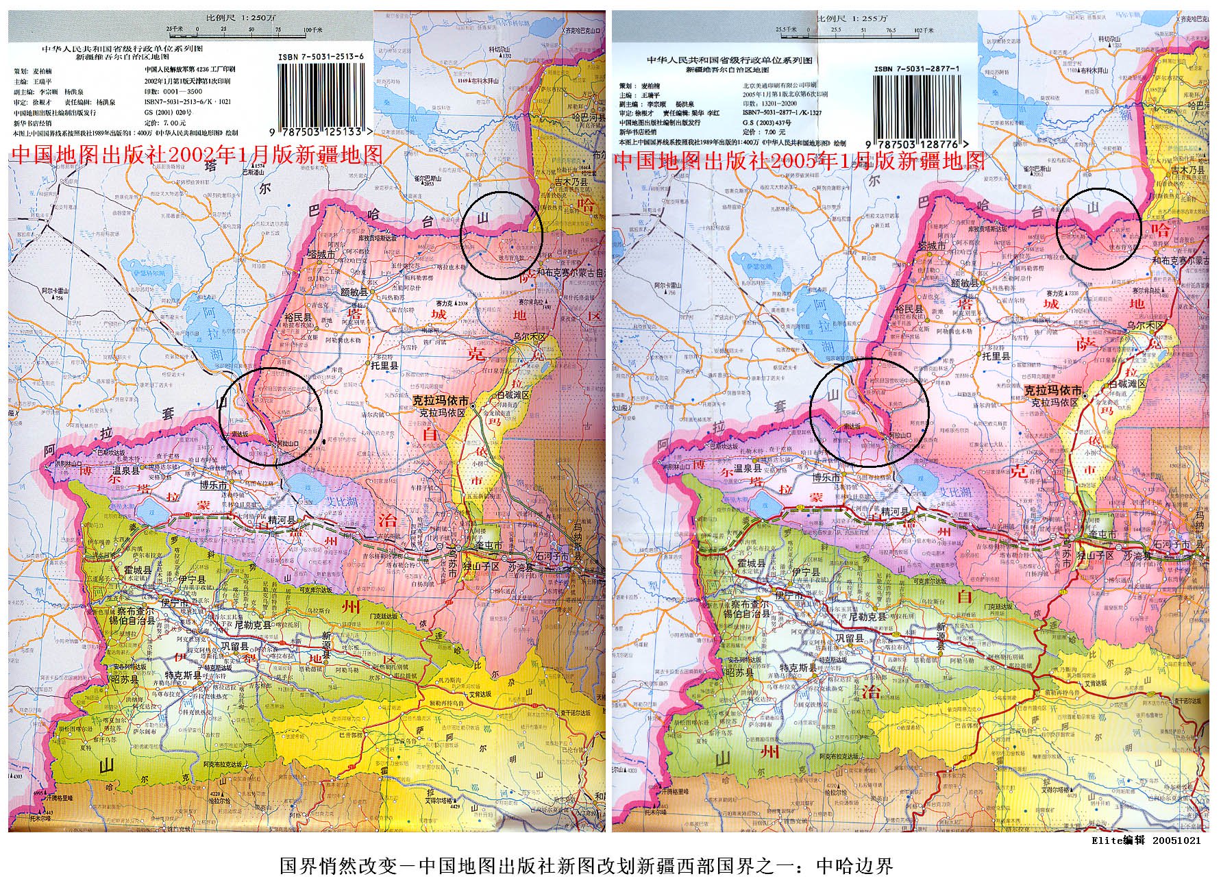 可笑的是,明明边界已有了变化,但无论是2002年版或者是2005年版,地图上还印者“本图上中国国界线系按照我社1989年出版的1:400万中国地形图绘制”,此地无银300两,纯属于有意混淆视听。