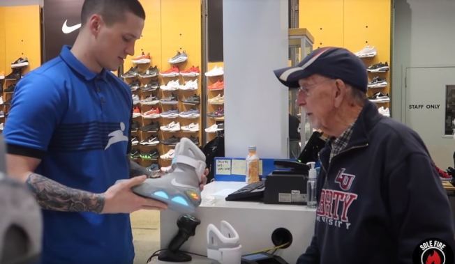 近日,一名美国球鞋Youtuber为拍摄恶搞店员影片,让自己爷爷拿着被誉为神鞋的NikeAir Mag到店里退货。在店内部分对球鞋颇有研究的店员,看到意外出现在店内的Nike Air Mag,不但惊呼连连还拿出手机拍照,也如实告诉爷爷该鞋款目前的市价,并力劝他不要退货。不过,也有不懂该鞋价值的店员表示该鞋子不是在该店购买的,无法做退货处理,请爷爷填资料并寄回Nike Outlet。