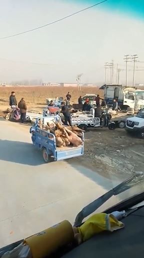 从脸书粉专「记录中国 6.0」贴出的影片可以看到,一名司机开车经过某郊区时,看到许多辆小型货车,货车上载满死猪,一旁商人则交头接耳,而这状况让司机看了不禁大怒,「黑不黑的,他X的这是死猪交易市场!死猪交易市场!」