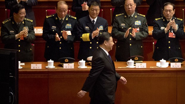 在一个会议上中国国家主席习近平走过时军队将领起立鼓掌(美联社)
