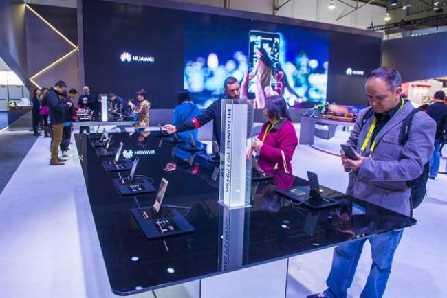 怕受贸易战牵连,今年许多大陆企业选择不参加2019美国消费性电子展,图为2018美国消费性电子展华为展场。(图/shutterstock)