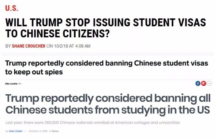 10月2日,Financial Times金融时报发布了一篇文章,称美国正在考虑取消中国留学生的学生签证。