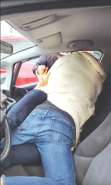 YouTube一段四分半钟视频近日在网上疯传,片段所见一名穿上白色外套、说广东话的中年男子,从司机座位钻入一辆黑色本田Fit私家车,一边怒骂一边用身体压向坐在副驾驶座的一名较年轻、说普通话及英语的男子,两人在车内扭作一团超过一分钟,打斗期间车辆喇叭不停在响。
