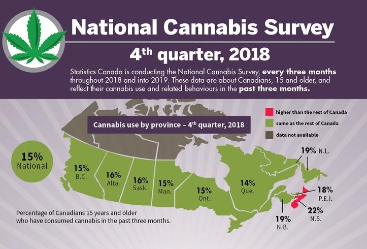 加拿大统计局7日发表调查报告显示,加拿大全国有460万、占适龄人口(15岁以上)15%的加拿大公民,在2018年4季度曾吸食大麻。而占适龄人口19%的人则认为,他们在2019年1季度里将会吸食大麻,该人数远高于目前统计的吸食人数。