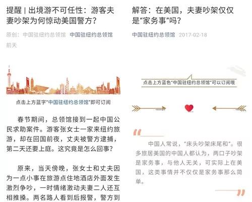 中国驻纽约总领馆此次更专门发文提醒海外华人:很多人认为两口子吵架是家务事,与他人无关,可在美国,这可不是小事。
