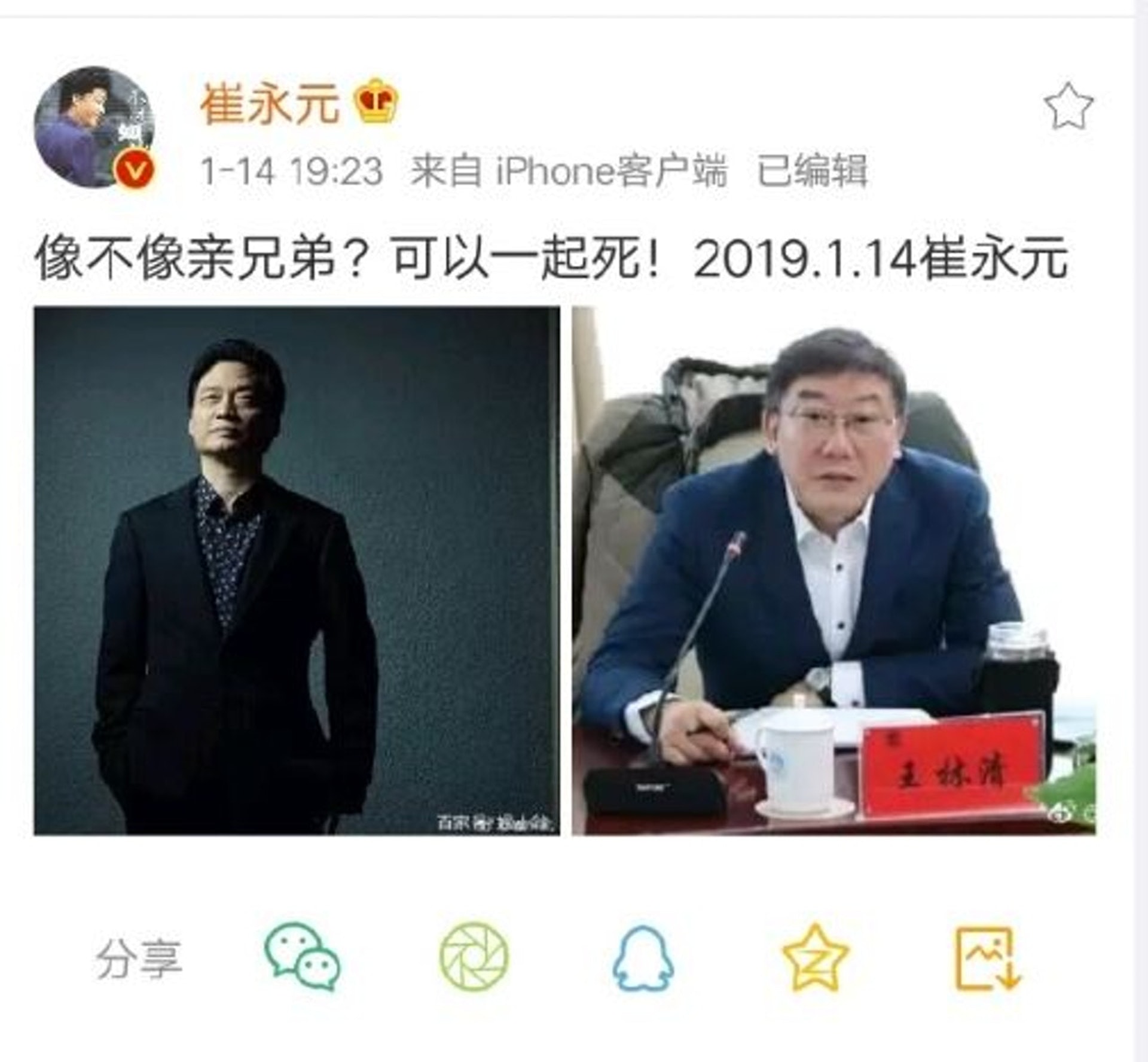 //@lifetimeuscn:这把崔永元的“爆料英雄”的牌子给砸了。王清林曝光的“副卷”、周强等人的“批示”却是真的,但这些会因王清林“认罪”而一笔带过。中共绝不会允许民间参与反腐。王清林“央视认罪”并撇清不了“千亿矿权案”中的司法腐败。从公开报道来看疑点重重:1)官方报道说王清林涉嫌“泄露国家秘密”,不就是曝光干预案件审判“批示”吗?那些“批示”怎么成了“国家秘密”?2)尽管王承认私藏了案卷,那么如何解释最高法“摄像头”都在那个时间坏了?不排除又是一个照稿宣读的“认罪”。中共的舆论引导差不多又成功了。“千亿矿权案”各界关注的焦点是爆光“副卷”显示权力干预审判。中共通过王清林电视认罪把社会舆论焦点引向了王清林偷藏“副卷”,而淡化了“副卷”的内容。即使王清林真的偷藏“副卷”,中共也是避实就虚。就像有小偷入室盗窃看到杀人犯,警方只追究小偷非法入室,而放掉杀人犯。