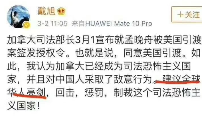 戴旭就是疯狗一条。你是老几?号召全球华人?