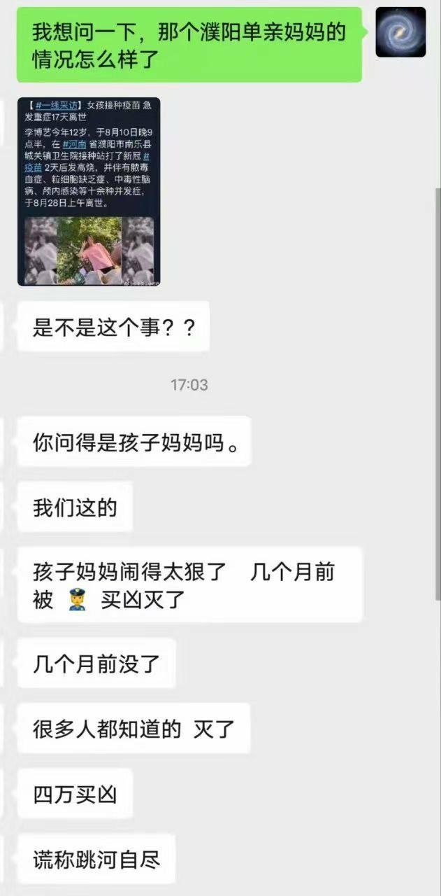 因疫苗而死亡的12岁女孩李博艺的妈妈,被河南濮阳警方4万雇凶杀害谎称跳河自尽