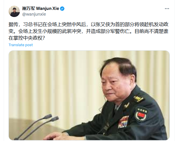 据晓说家爆料,习近平密谋刺杀张又侠,试图扭转败局!…