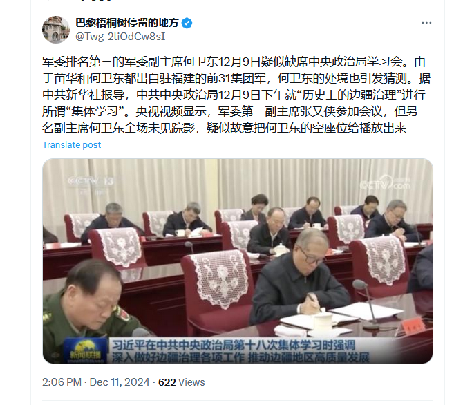 近日,中共中央军委出台的全面清除「有害影响」的新规…